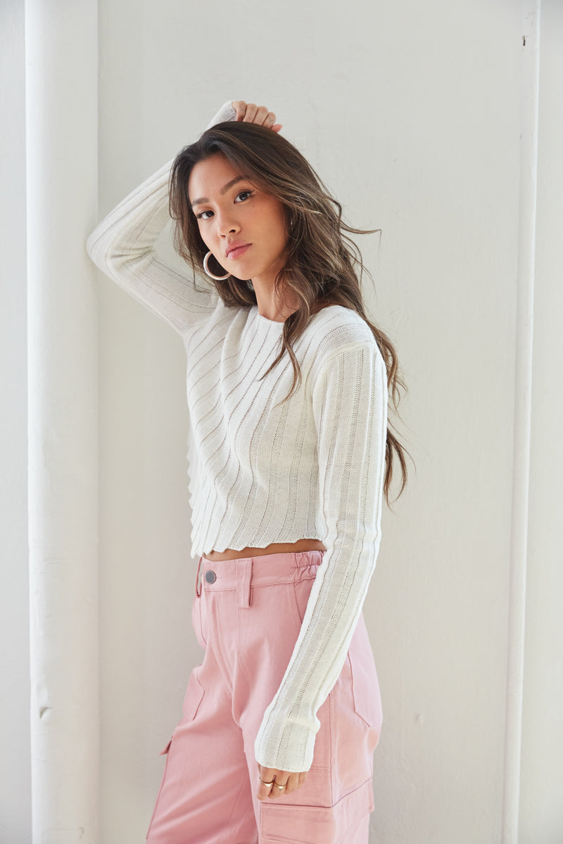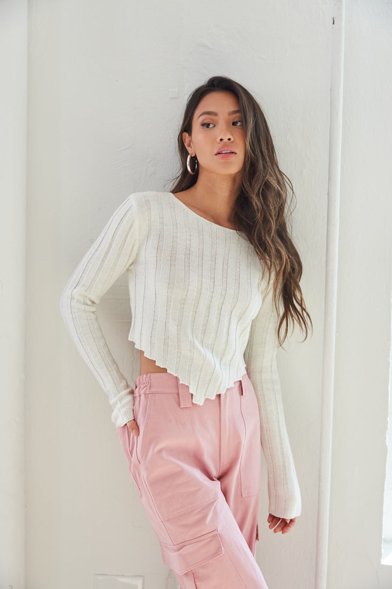 Elevate your everyday style with the Becka Knit Crop Top! This lightweight sweater features a ribbed knit design and pointed hem. Available in white and teal. Pair with your favorite to finish off the look!