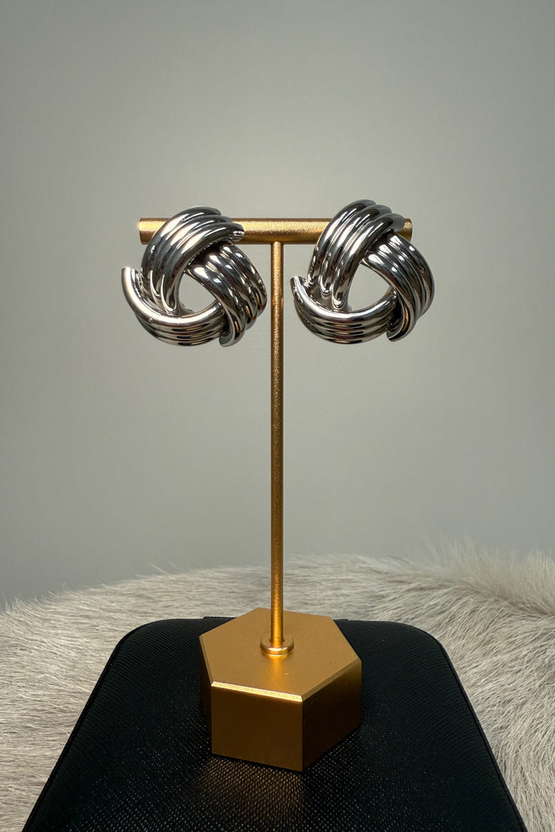 Add a bold statement to your look with our Demi Knot Earrings. These stunning earrings feature an oversized knot design in your choice of gold or silver. Whether you're looking for a feminine touch or an edgy vibe, these earrings have got you covered. Elevate your style with a playful twist!