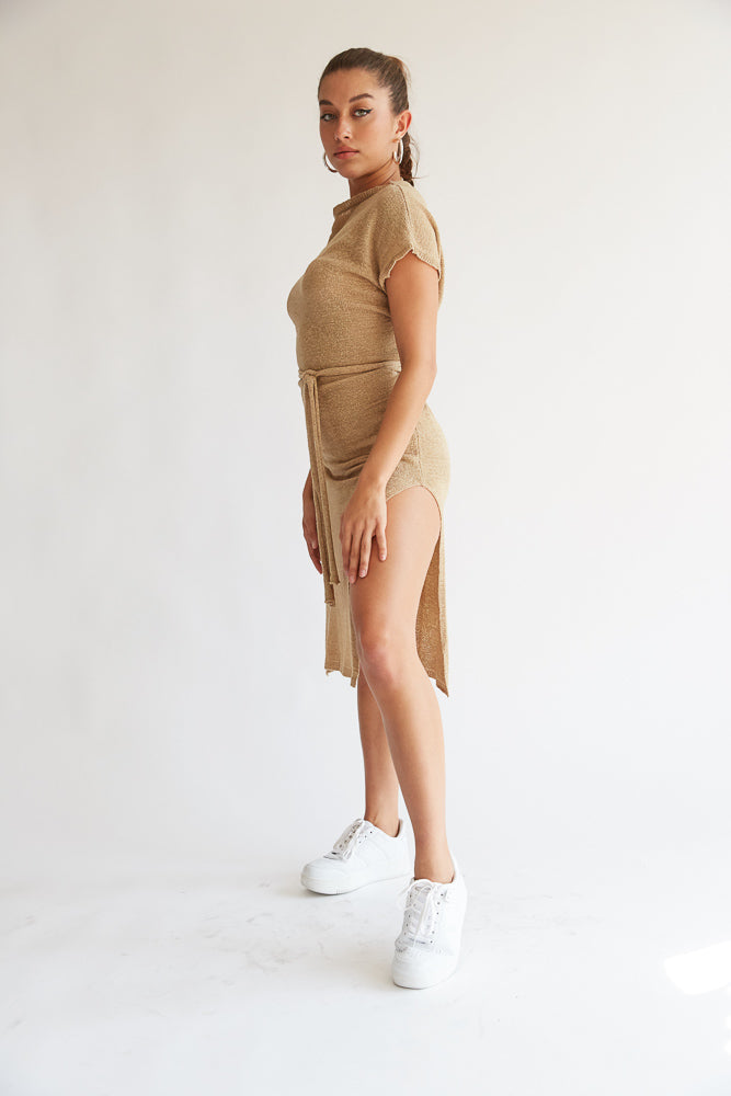 Hey babe, the Harper Wrap Midi Dress is perfect for any occasion! Featuring a ribbed boat neckline, a waist wrap tie detail for a cinched fit, a chic knit design, and side slits on both legs for a glimpse of skin. Available in ivory and taupe.