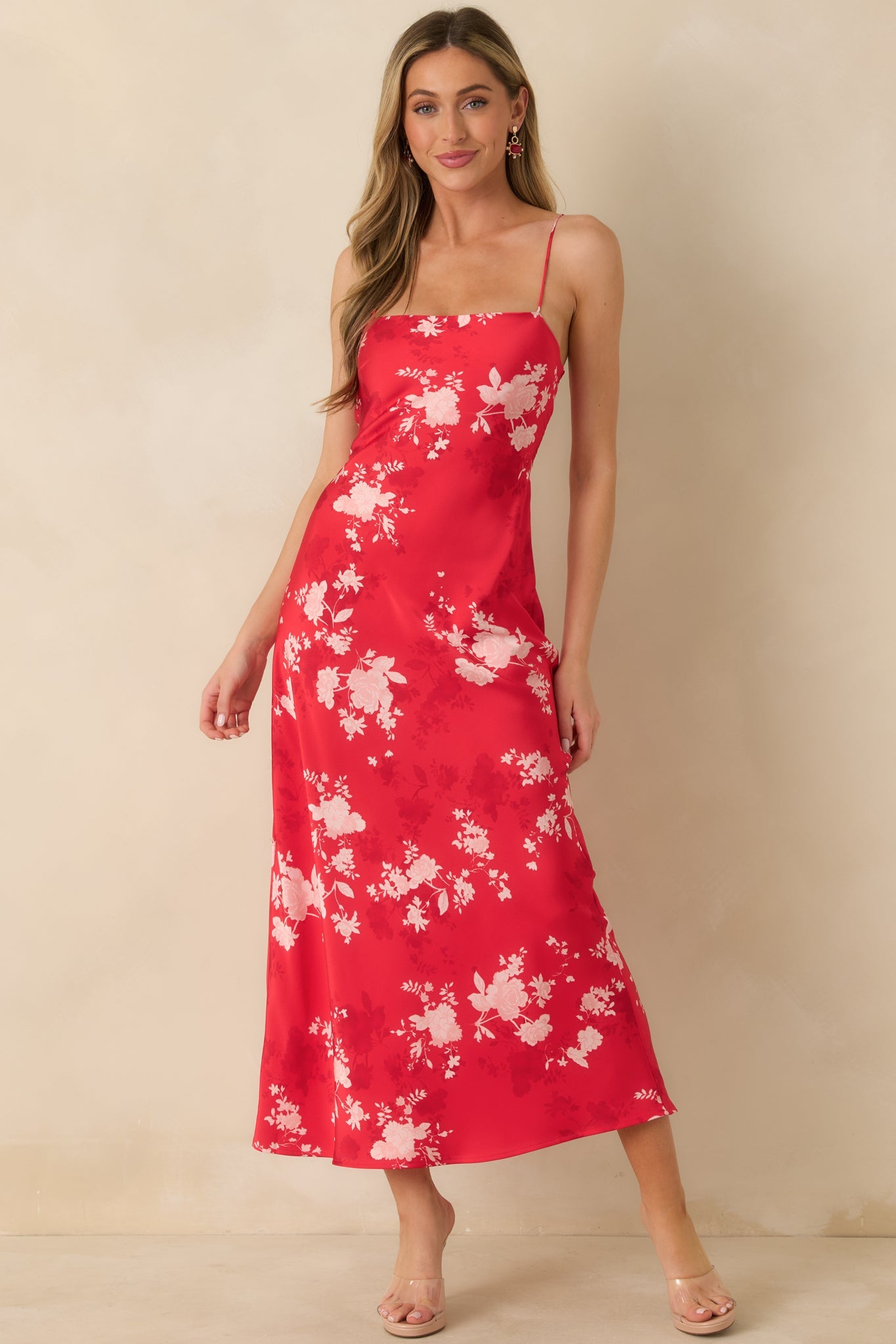 The Z Supply Kiss Me Red Alyse Darya Floral Maxi Dress is romantic with a confident edge. This striking red floral maxi dress is made for golden-hour moments and unforgettable nights. The sleek silhouette skims the body beautifully, while delicate straps and a smocked back add comfort without sacrificing allure. Effortless, feminine, and endlessly flattering, it’s the kind of dress that does all the talking for you. This red floral maxi dress is made from a smooth, lightweight woven fabric and features a fitted bodice with adjustable spaghetti straps, a smocked back with tie detail, and a flowing full-length skirt for an elegant, comfortable fit.